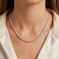 Elevate your style with this exquisite diamond tennis necklace. Crafted in radiant white gold, each round brilliant cut diamond is carefully set to maximize its fire and scintillation. This timeless piece exudes luxury and sophistication, perfect for adding a touch of elegance to any ensemble.