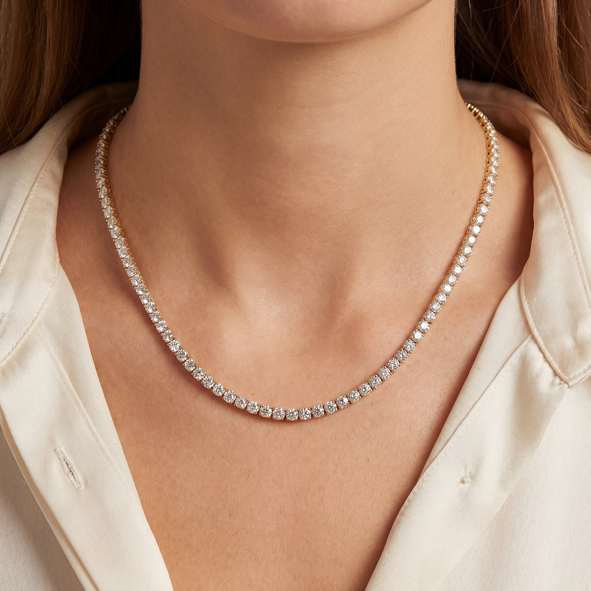 10Ct 14K Gold Diamond Tennis Necklace