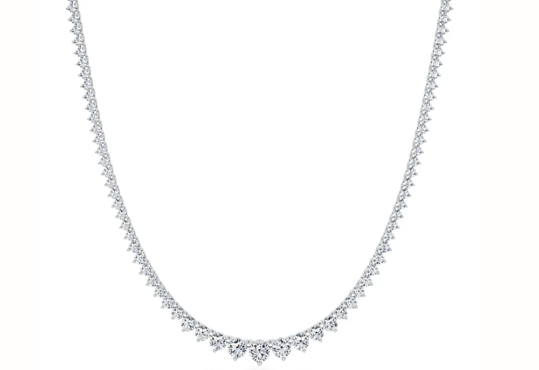 Dazzle with this stunning diamond necklace, masterfully crafted in gold. Each round cut diamond is set to maximize brilliance, creating a continuous strand of radiant light. A timeless treasure, perfect for adding a touch of elegance to any occasion.