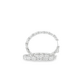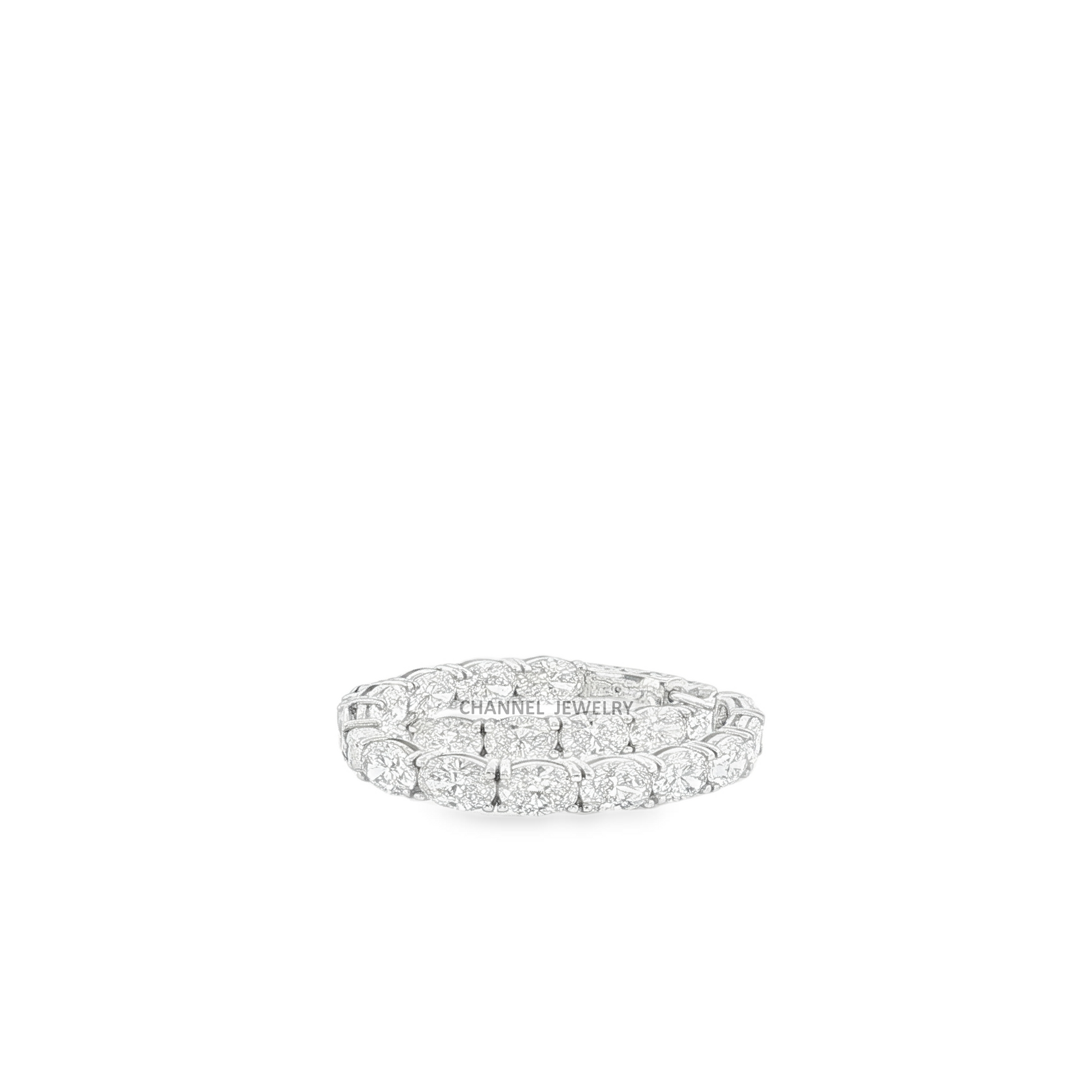 Exquisite platinum eternity rings, handcrafted in white gold, showcase a continuous line of round brilliant-cut diamonds. These fine diamonds display exceptional brilliance and fire, set in a delicate, shared-prong setting, emphasizing the seamless elegance of this timeless design. A stunning celebration of everlasting love and commitment.