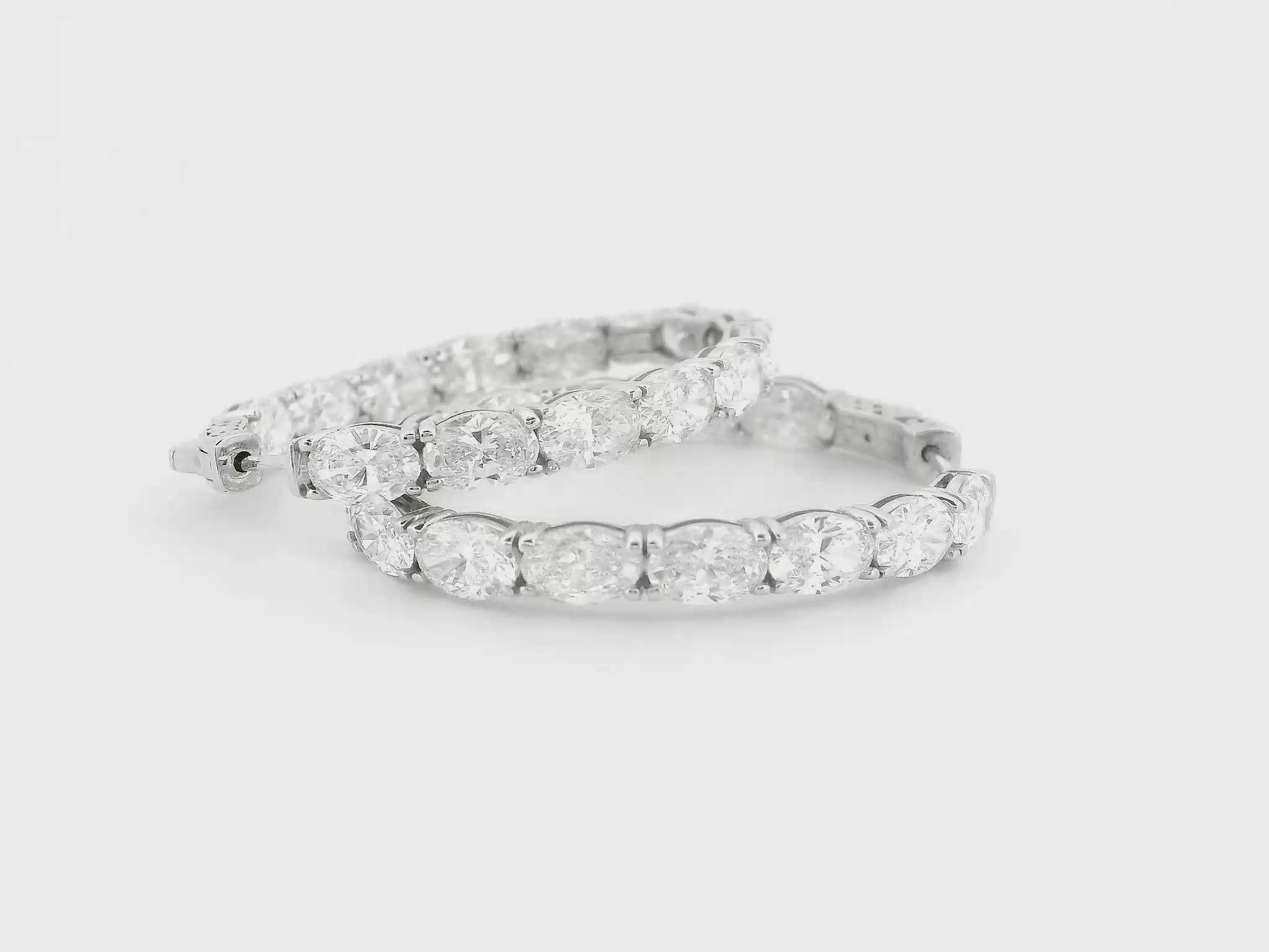 10ct 14K White Gold Oval Diamond Hoop Earrings