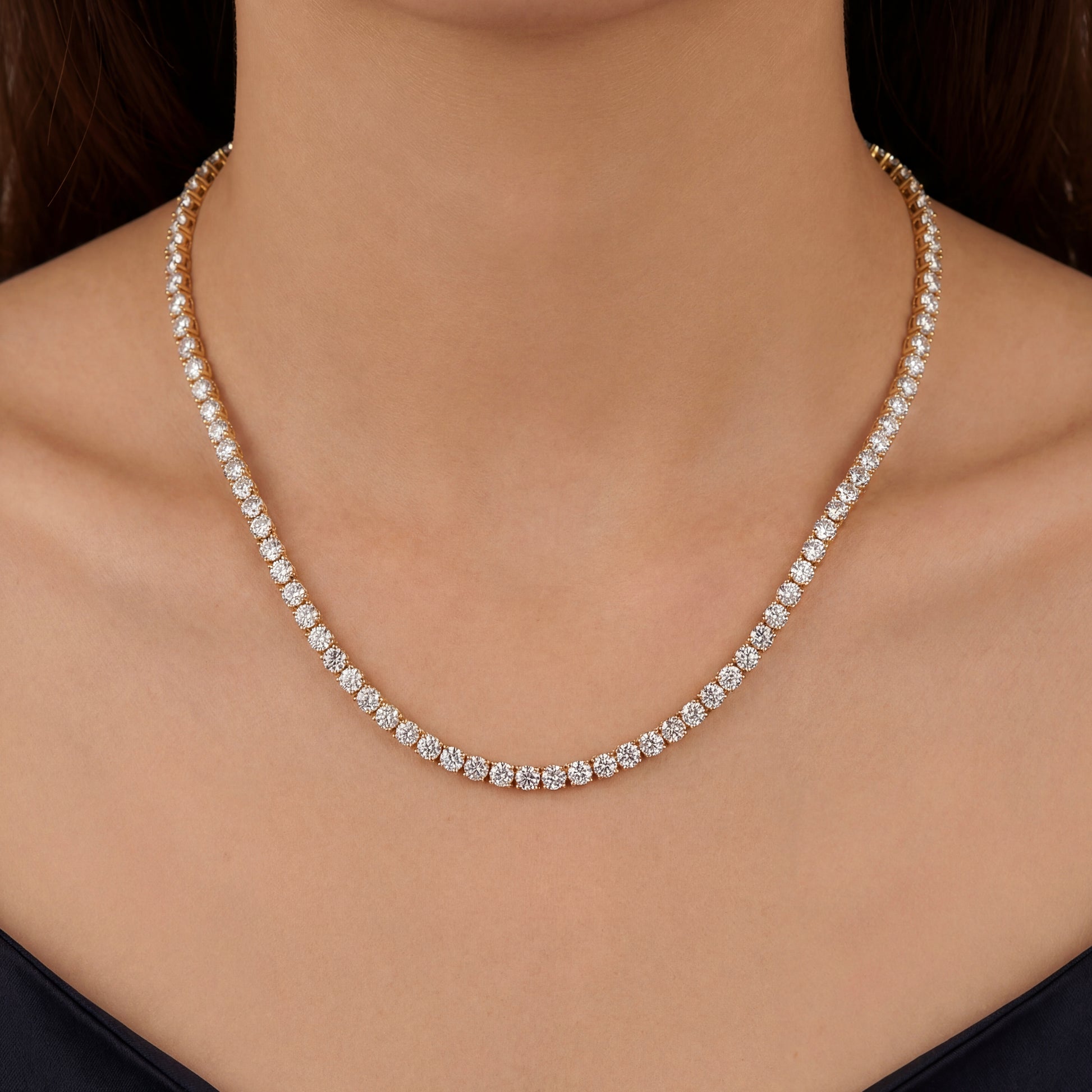 12Ct 14K Gold Tennis Necklace