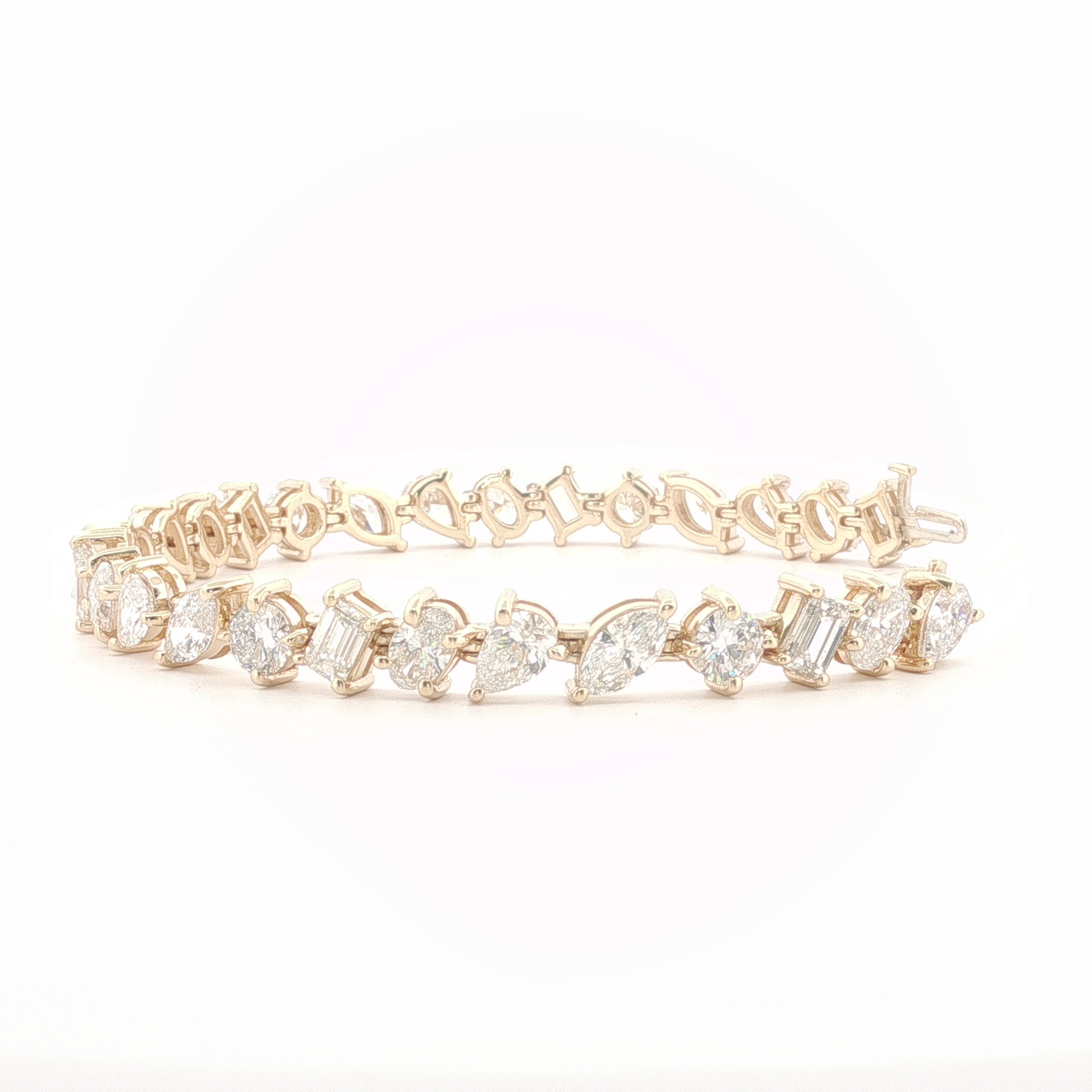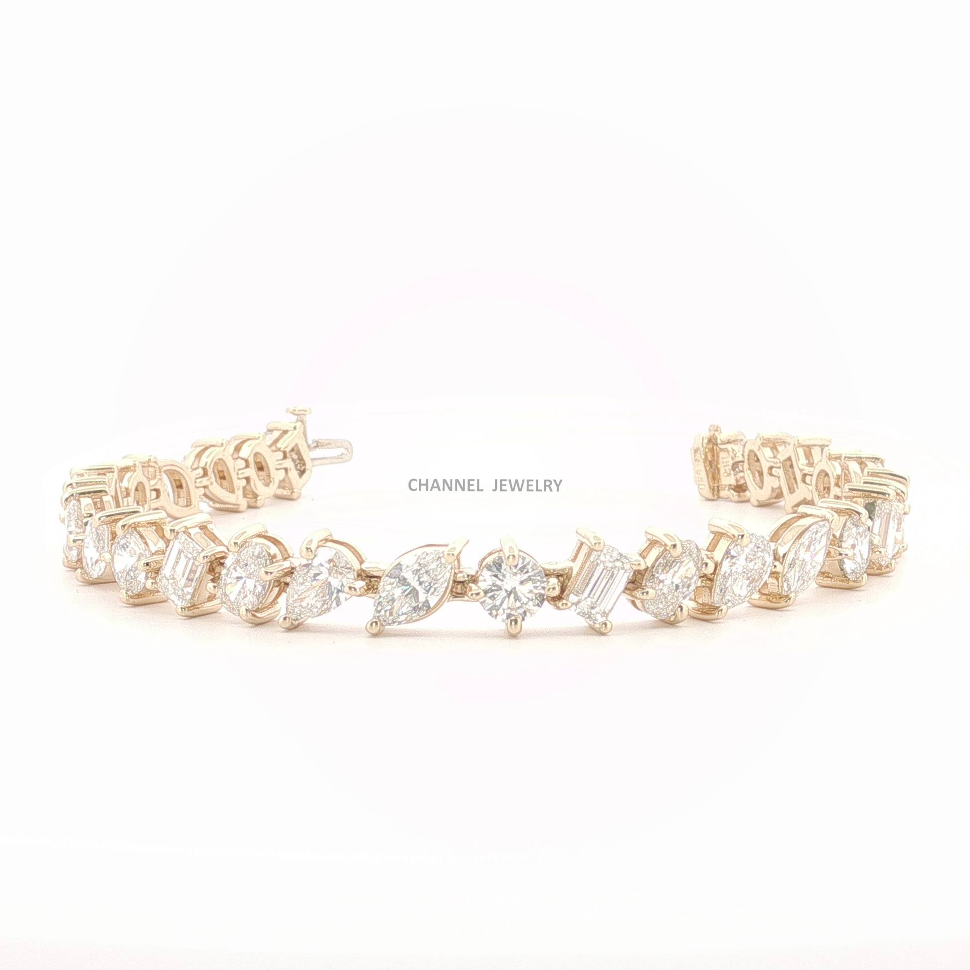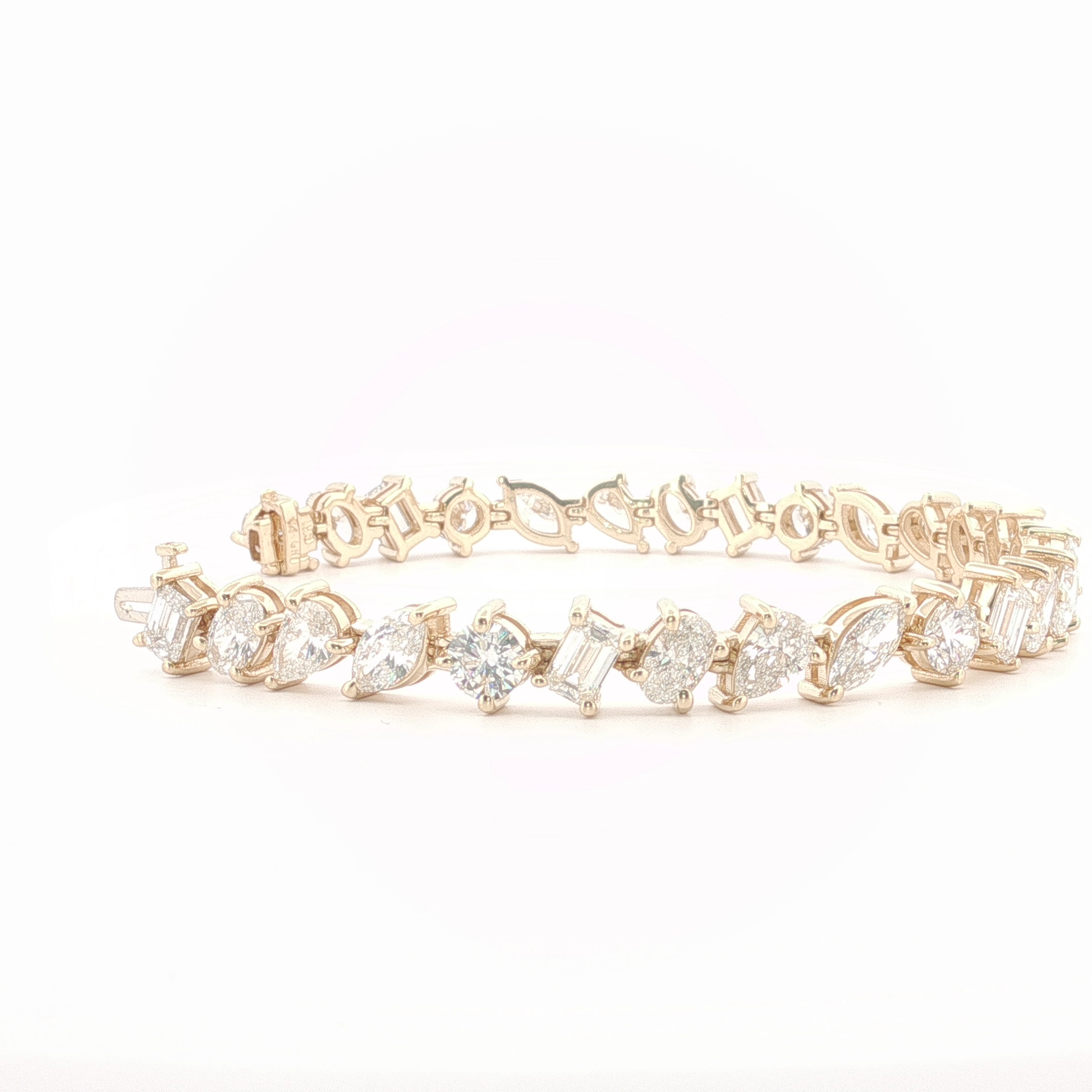 13Ct 14K Gold Mixed Shape Tennis Bracelet