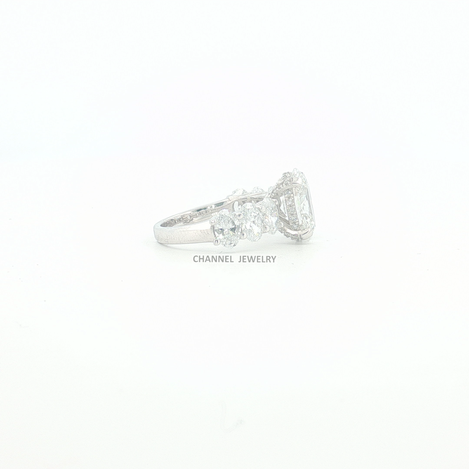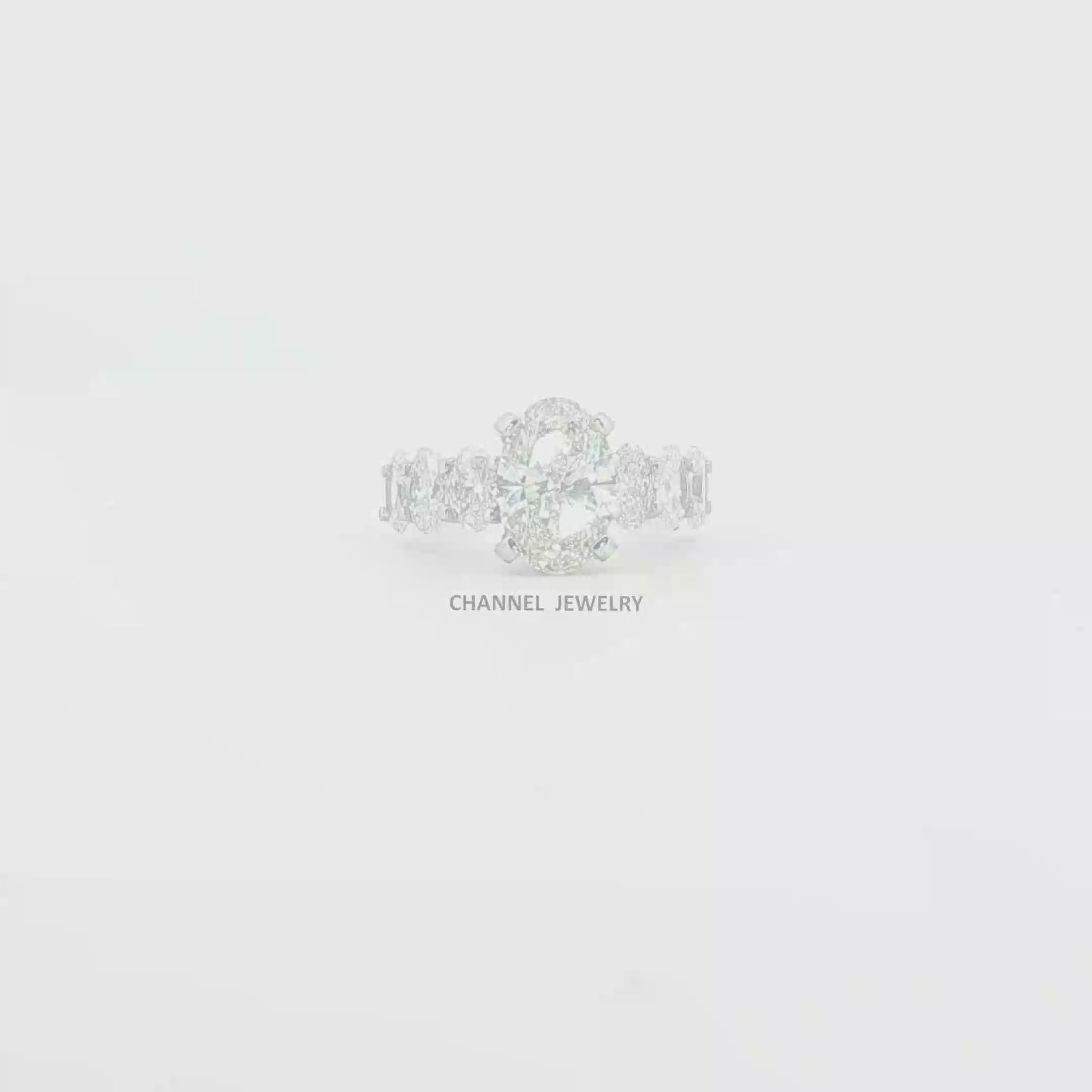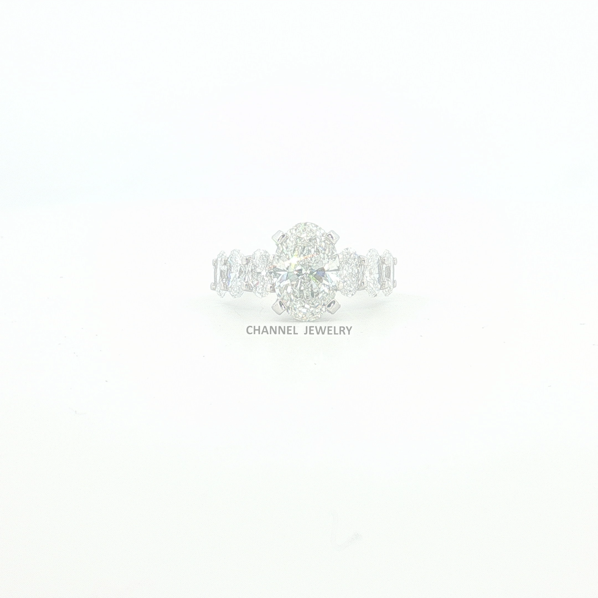 Elevate your elegance with this exquisite multistone ring, crafted in lustrous platinum and white gold. The radiant oval cut diamond takes center stage, enhanced by brilliant cutting style, radiating unmatched sparkle and sophistication. A timeless treasure that captures the essence of refined beauty, a perfect symbol of everlasting love.