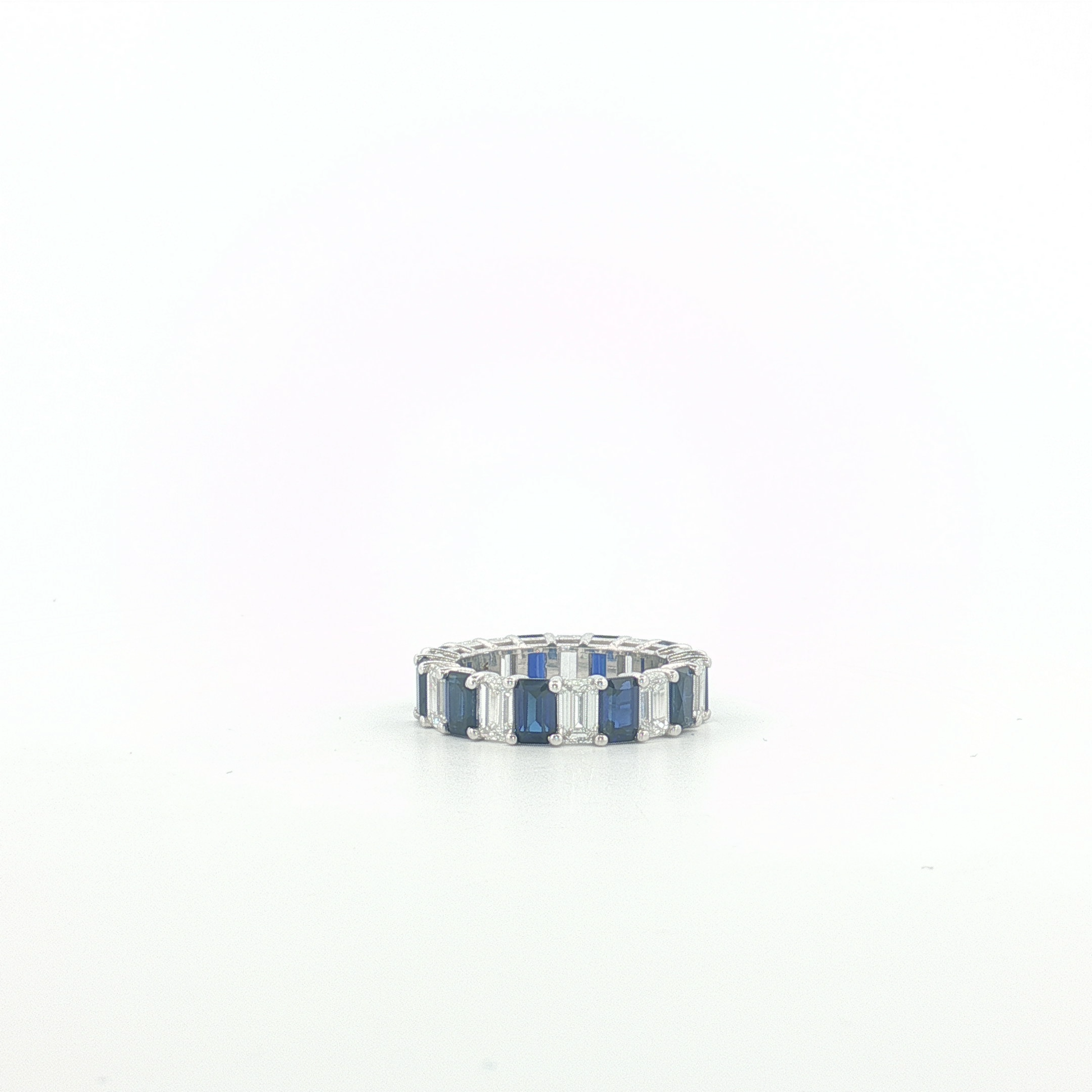 7Ct 14K Gold Eternity Ring with Royal Blue Emerald Cut Sapphires