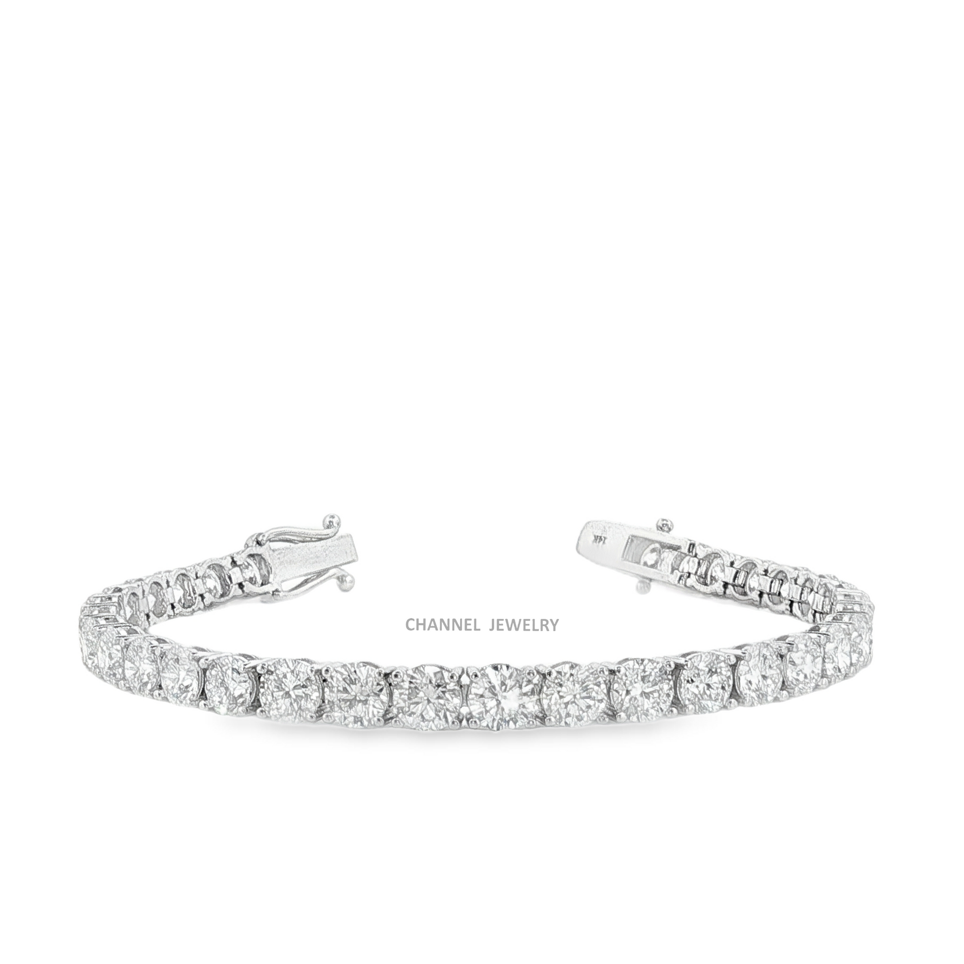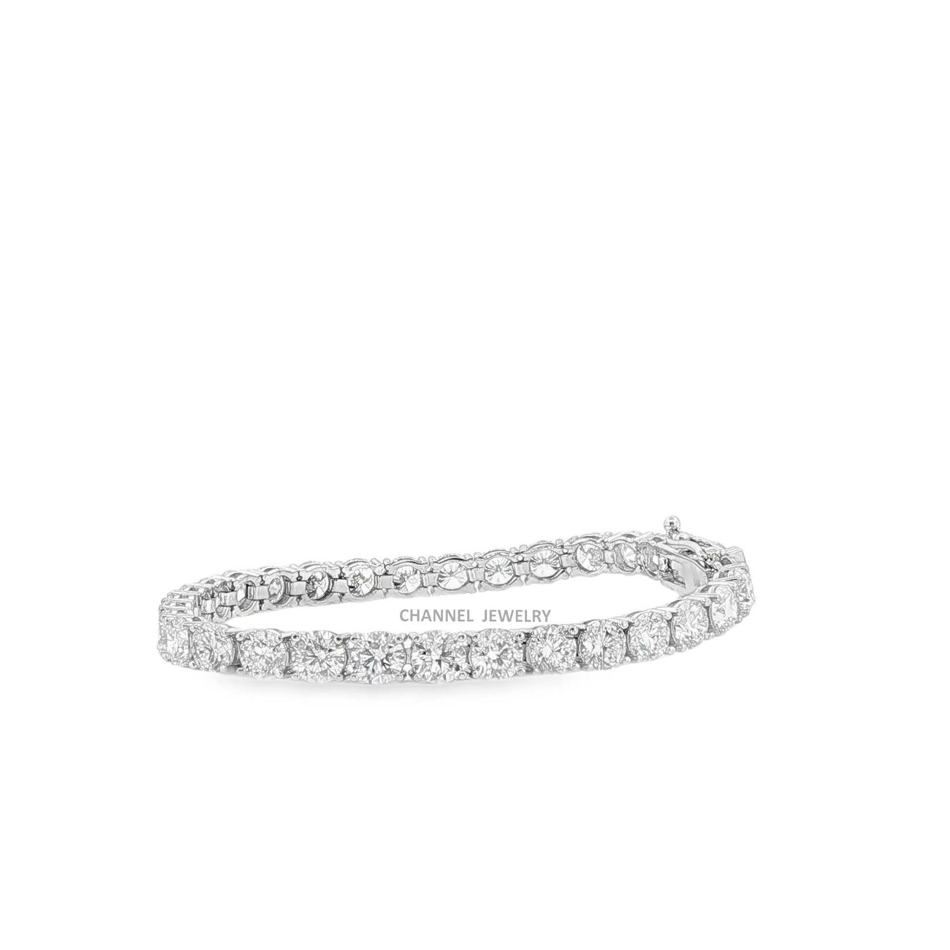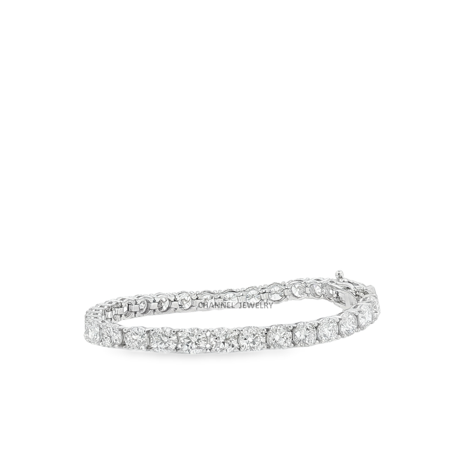 Elevate your style with this classic white gold tennis bracelet featuring a row of brilliant-cut diamonds. Meticulously crafted in platinum, this timeless design exudes elegance and sophistication. A stunning accessory suitable for any occasion, this bracelet adds a touch of sparkle to your ensemble.