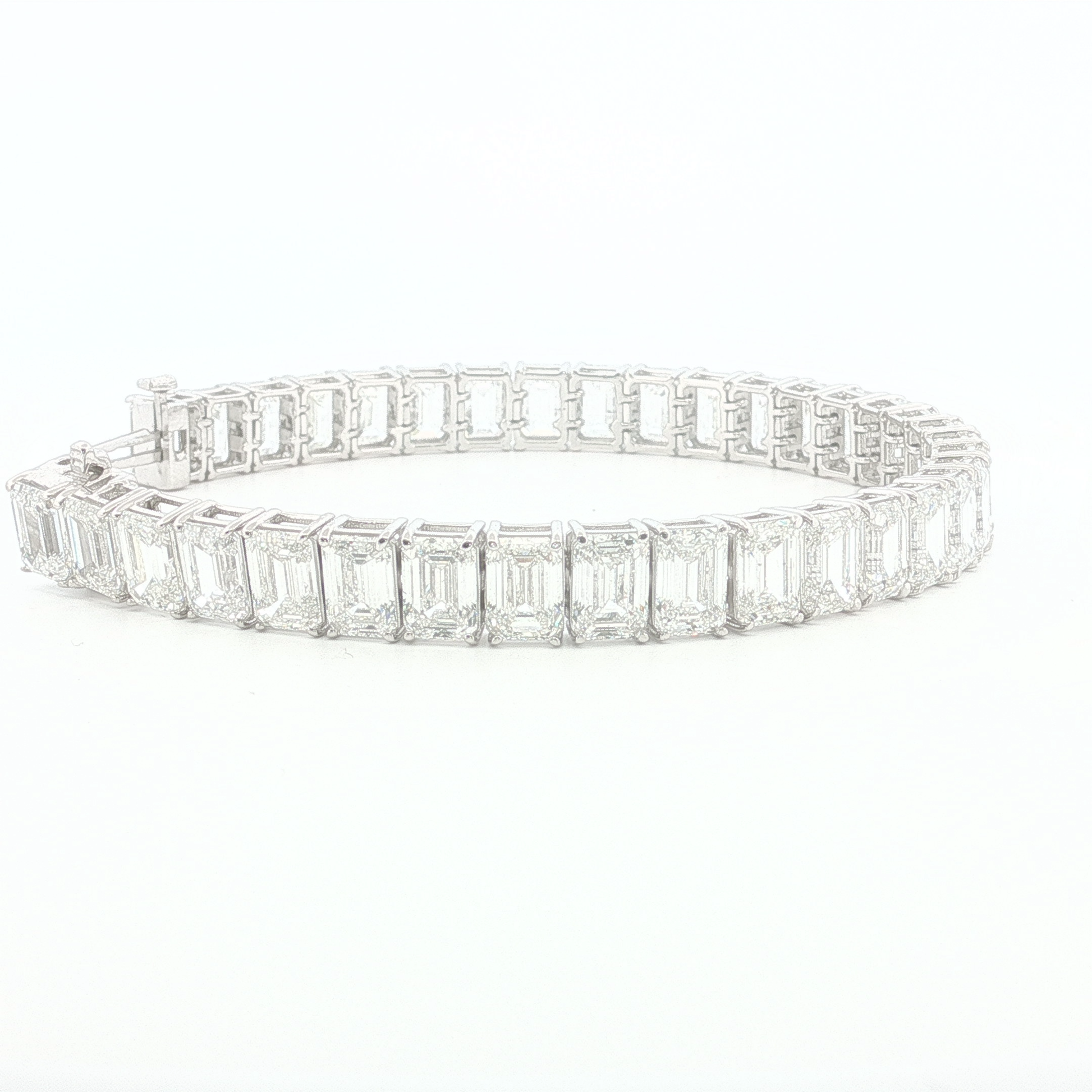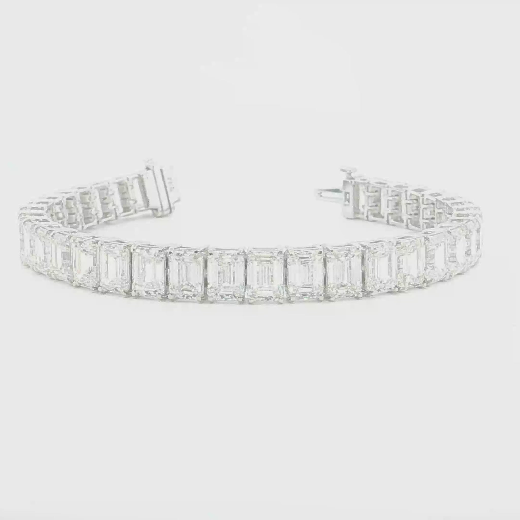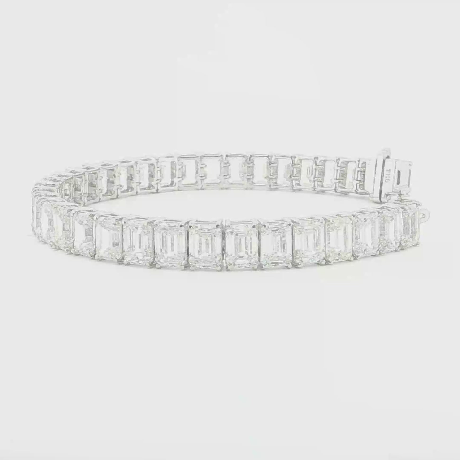 37Ct 14K Gold Emerald-Cut Diamond Tennis Bracelet