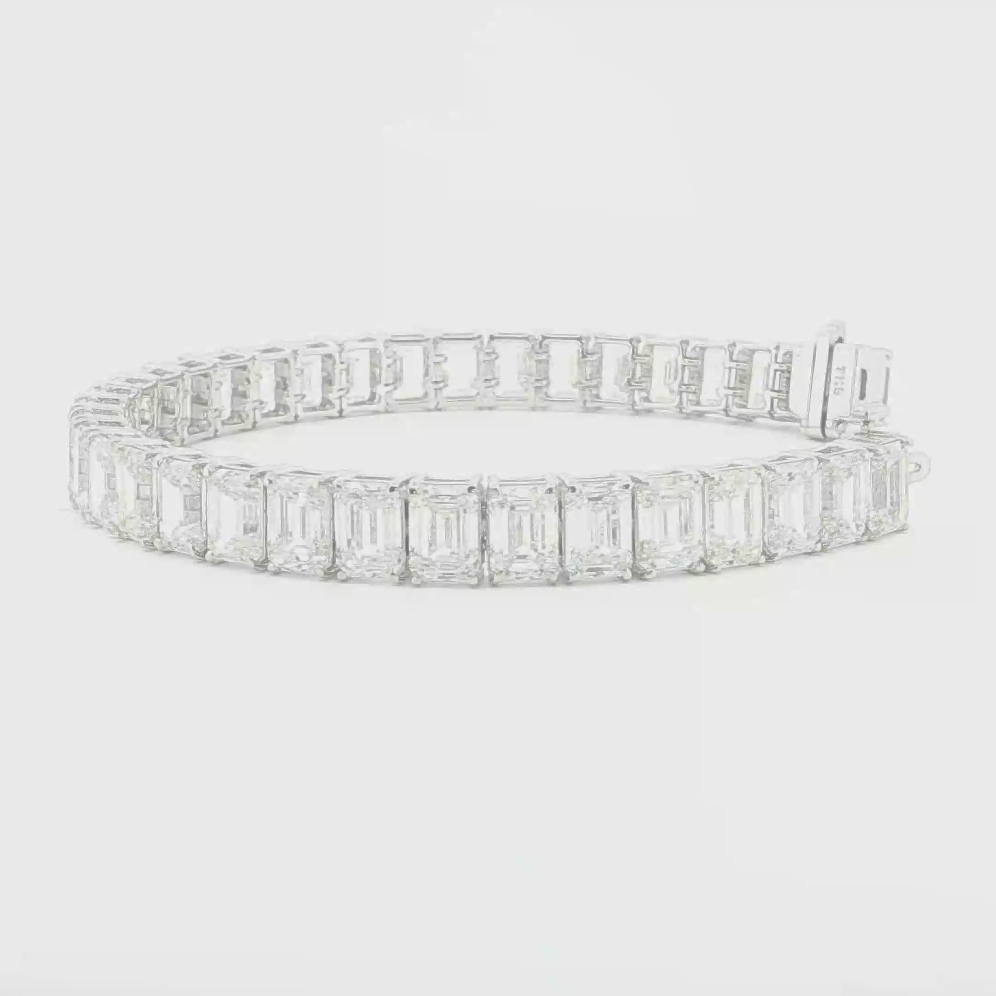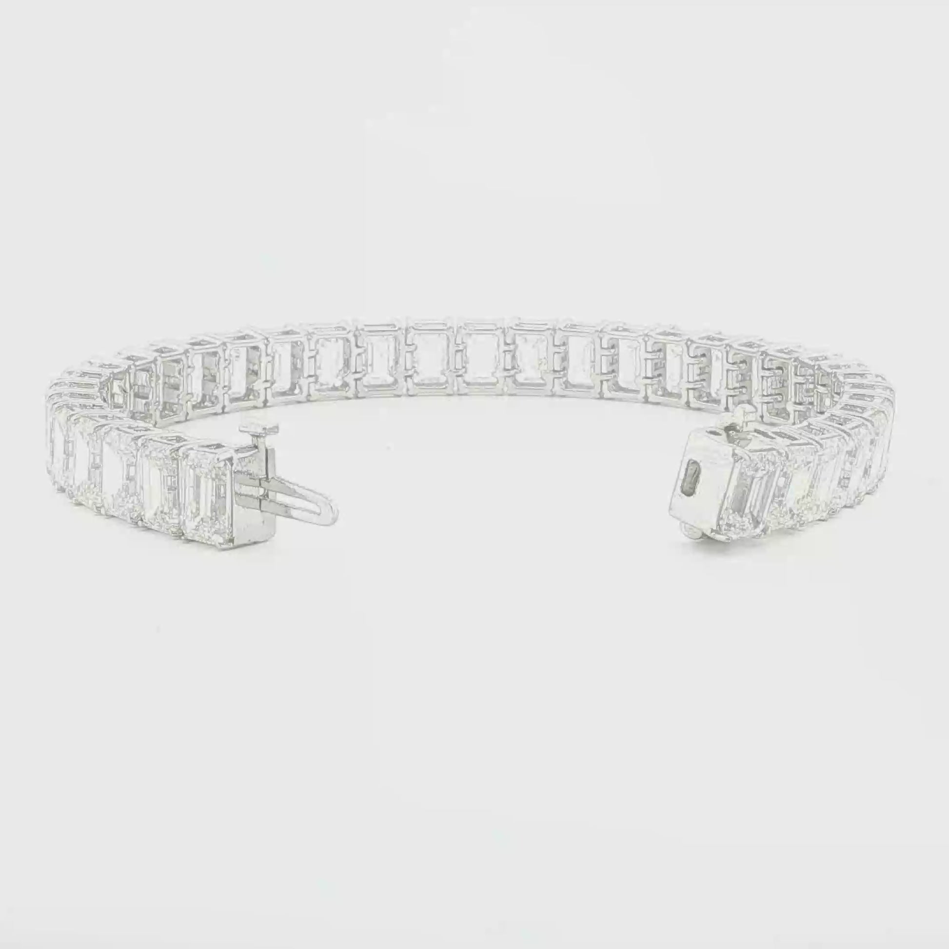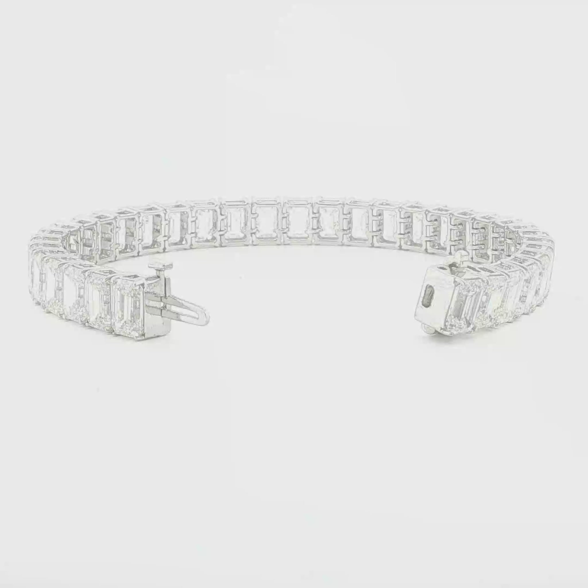 Indulge in the allure of this exquisite emerald tennis bracelet, showcasing a seamless array of emerald-cut diamonds. Each stone is meticulously step-cut to optimize brilliance. This sophisticated bracelet features the timeless elegance and a captivating sparkle, perfect for adding a touch of luxury to any ensemble.