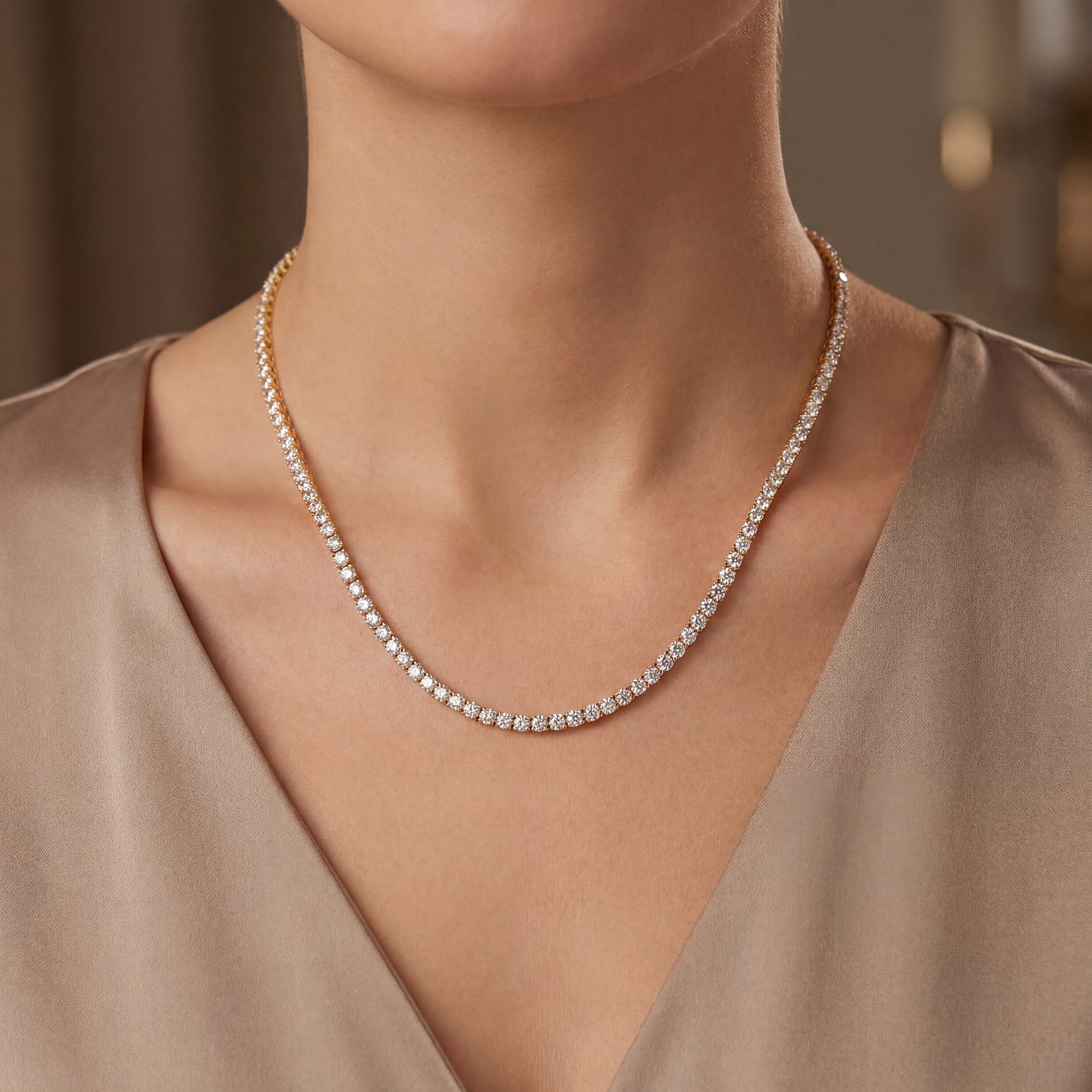 8Ct 14K Gold Tennis Necklace