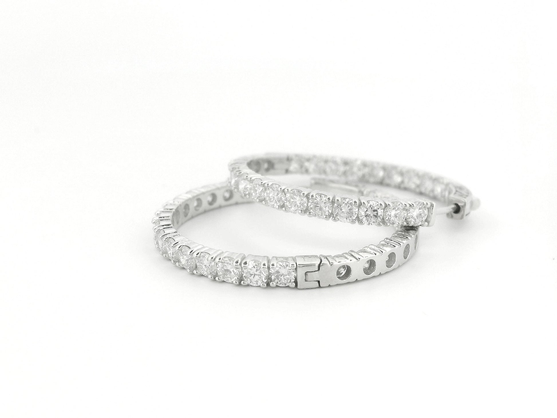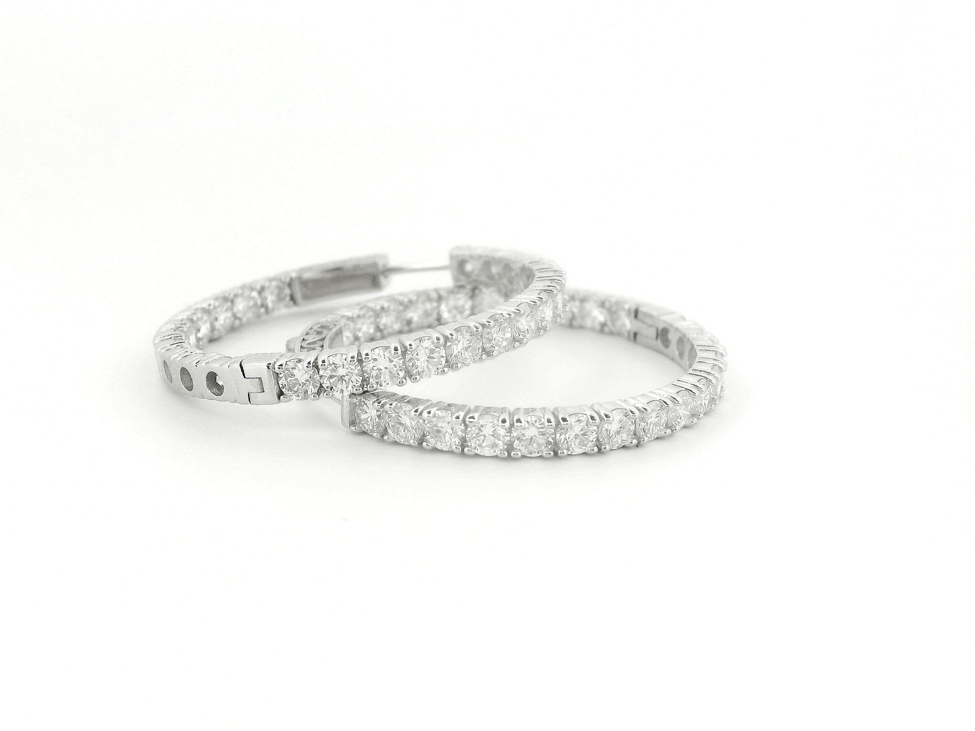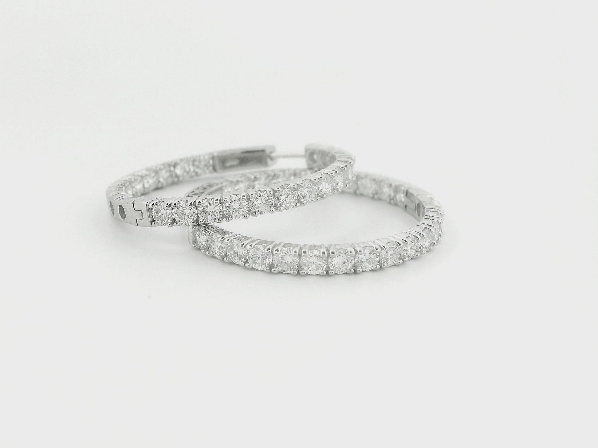 Elegant 14K White Gold Round Diamond Hoop Earrings