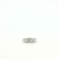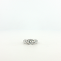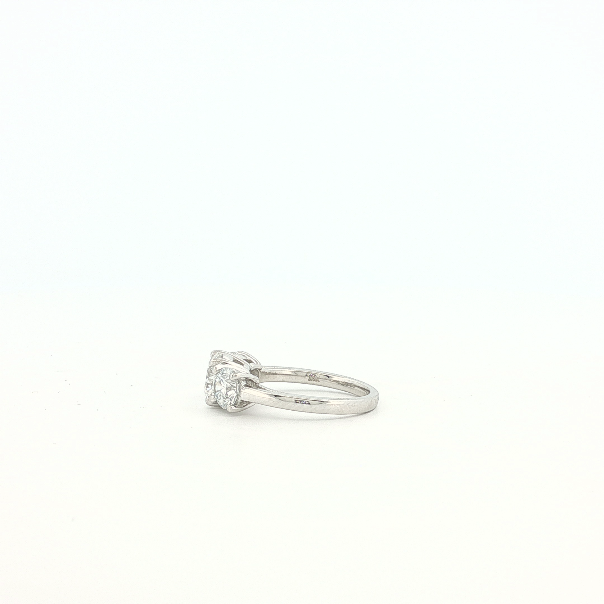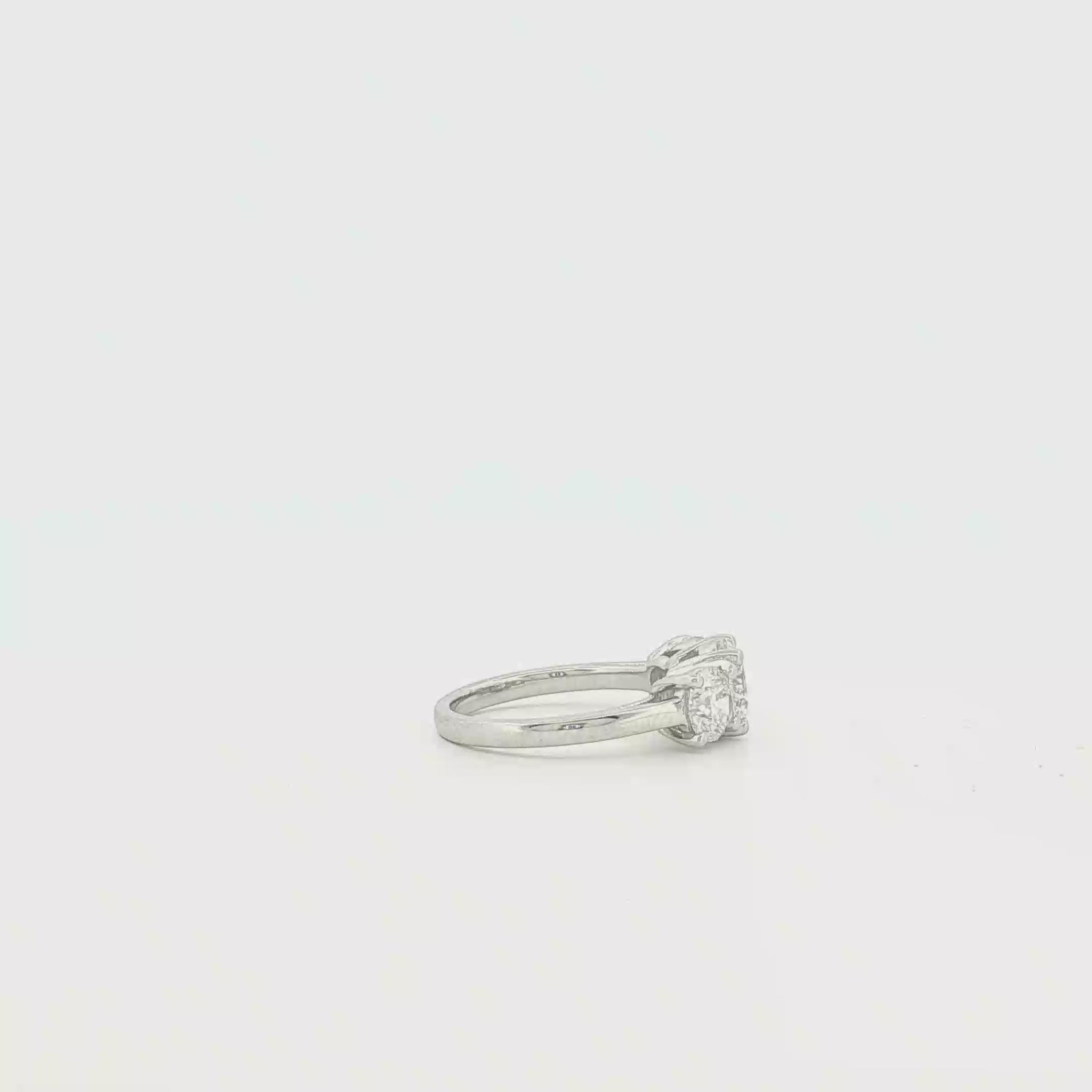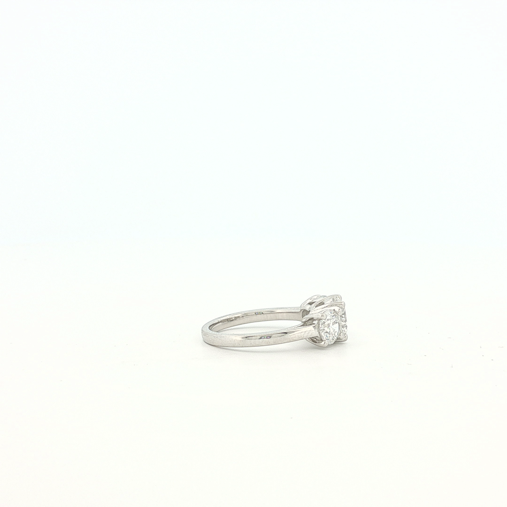 Elegant multistone ring expertly crafted in luminous platinum with a timeless appeal. This stunning ring features a classic three-stone design, each stone exhibiting a brilliant round cut to maximize its fire and scintillation. The white gold prongs accentuate the diamonds' sparkle, offering a harmonious balance of luxury and sophistication.