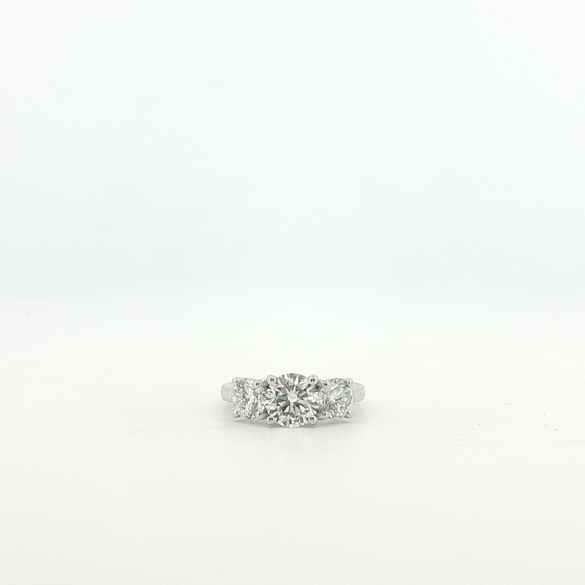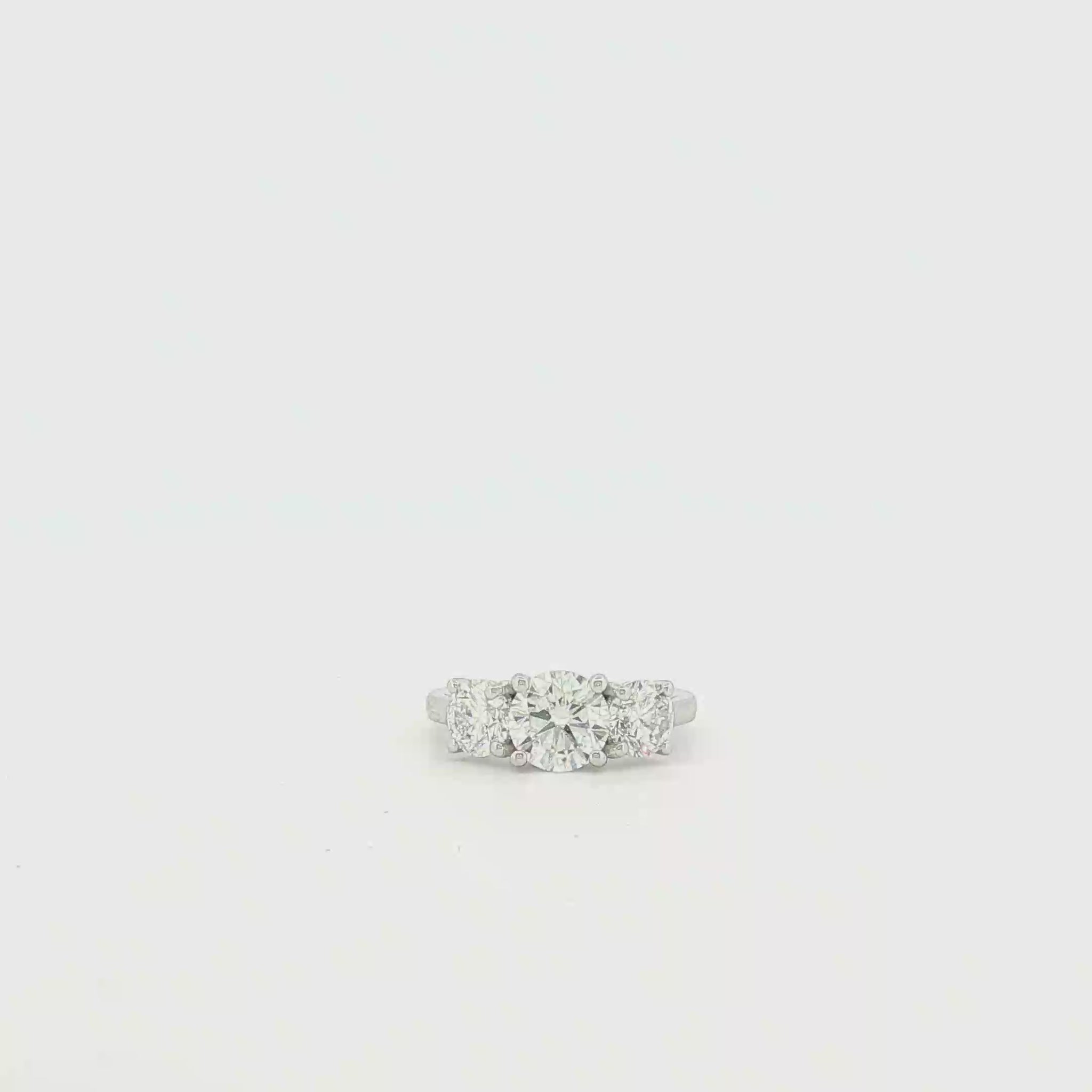 Platinum Three-Stone Ring with Round Brilliant Cut Diamonds